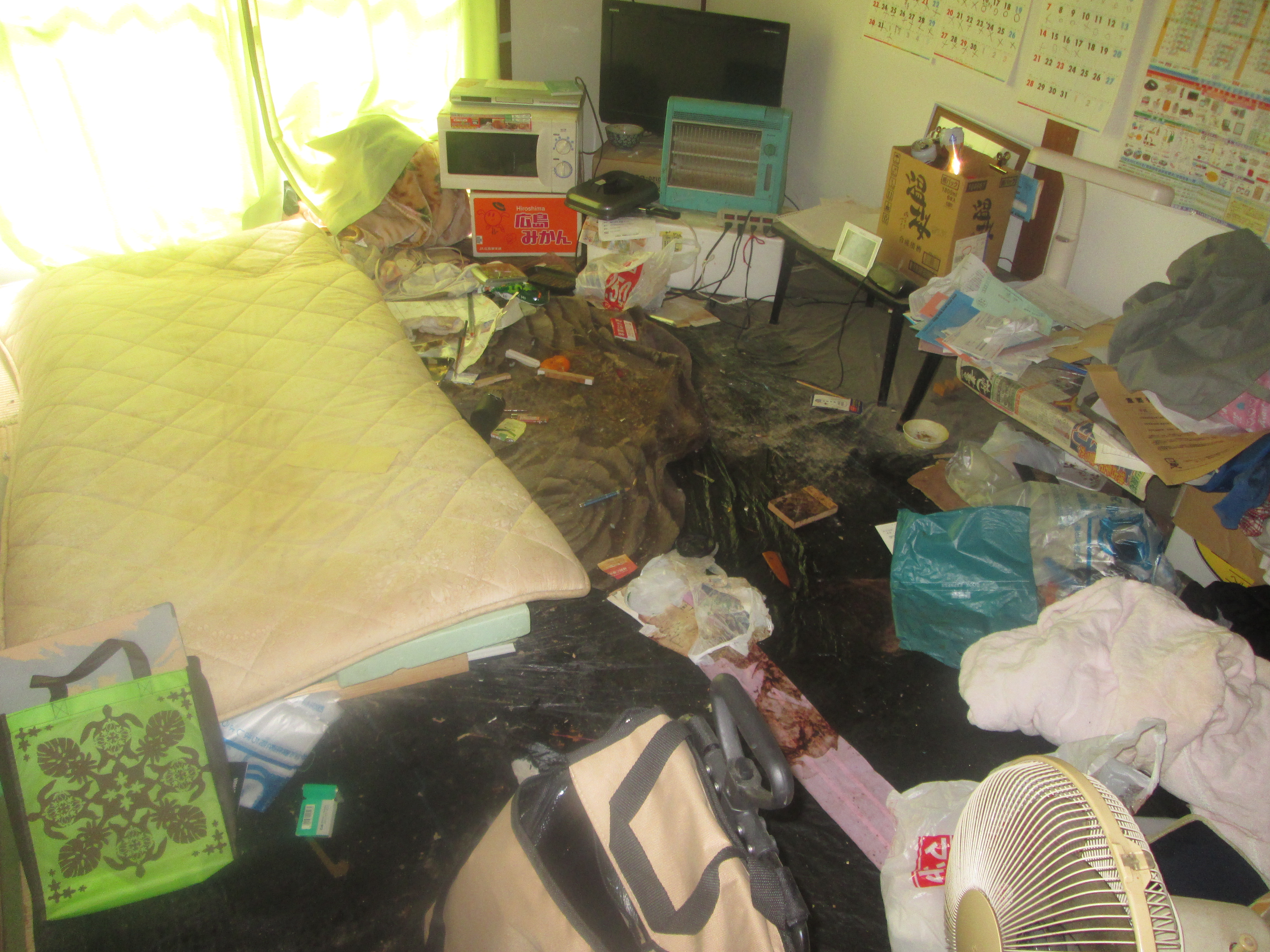 まずは、体液などが浸みついた部屋の物や布団などの除去から取り掛かっていただきました。